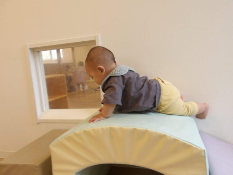 何かお話をしているのかな おやまのマットの上まで上がれるようになったよ