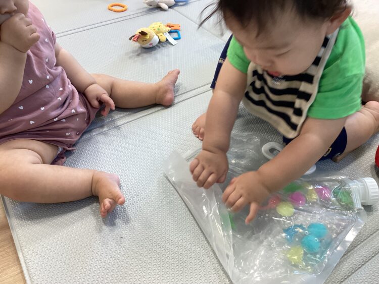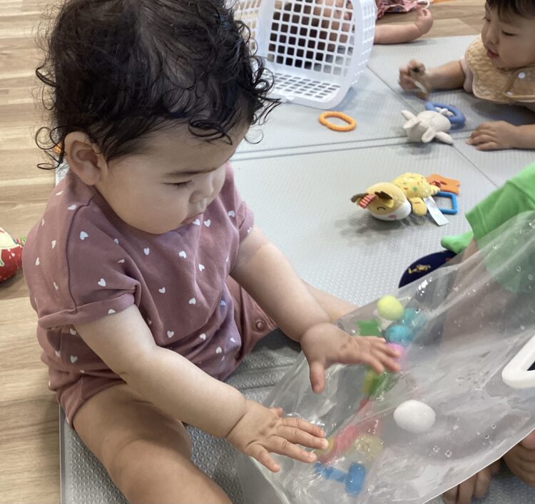 袋の中にお水を入れて触って遊んだり![]()