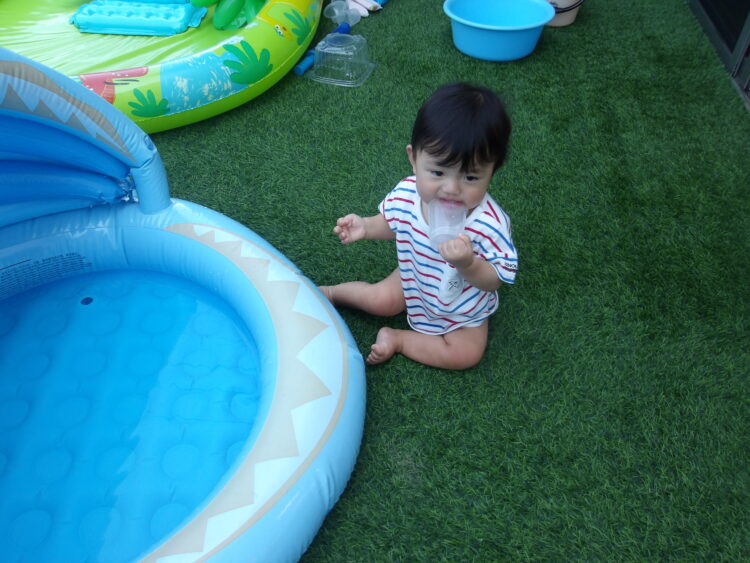 プールに水を入れ遊びました![]()