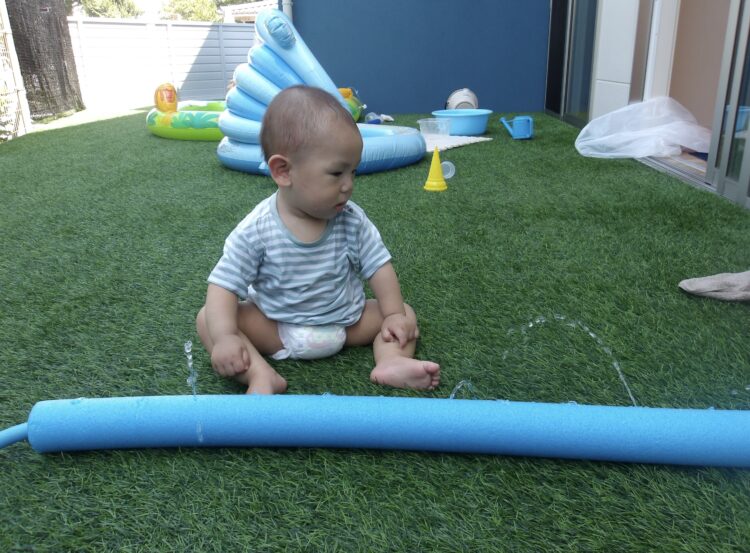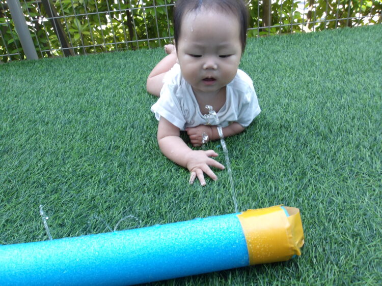 出ている水をつかまえようとするのですがつかまることができず「何で」という顔をしていました![]()