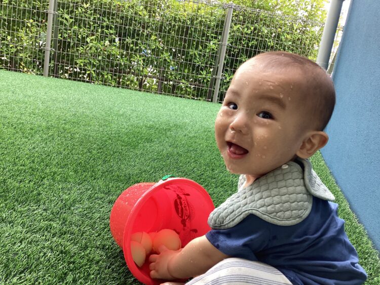 午前睡をした後はテラスにて水遊びをしまし![]()
