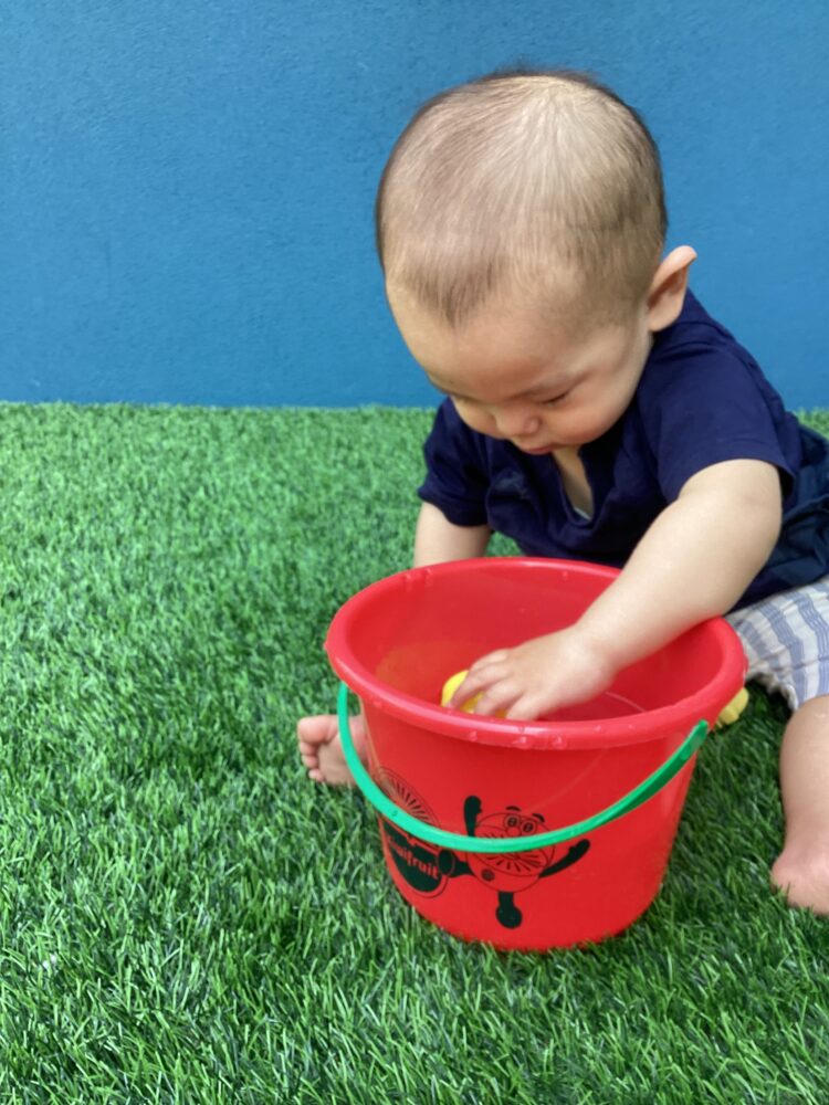 初めは見ているだけでしたが、少しずつお水に触れるようになり楽しんでいました![]()