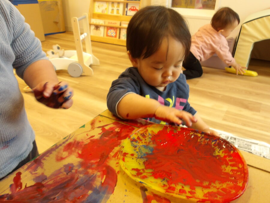 少しずつ触れるようになってきて、絵の具遊び楽しかったね