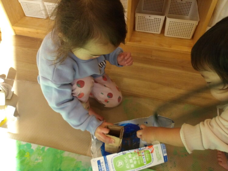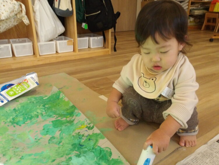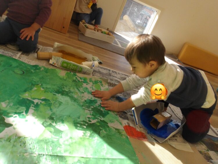 中には絵の具をつけてスタンプをしたり、思い思いに楽しんでいました![]()