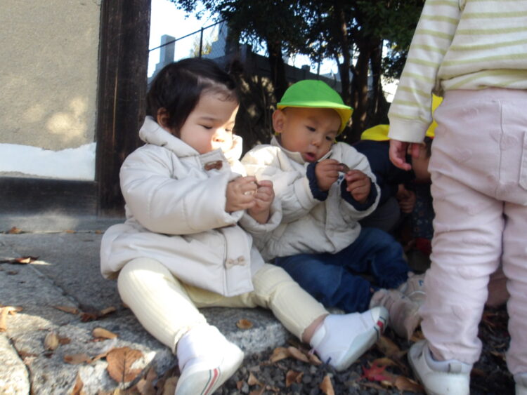 綺麗などんぐりや葉っぱを拾ったり、じっくり観察する姿もありましたよ👀