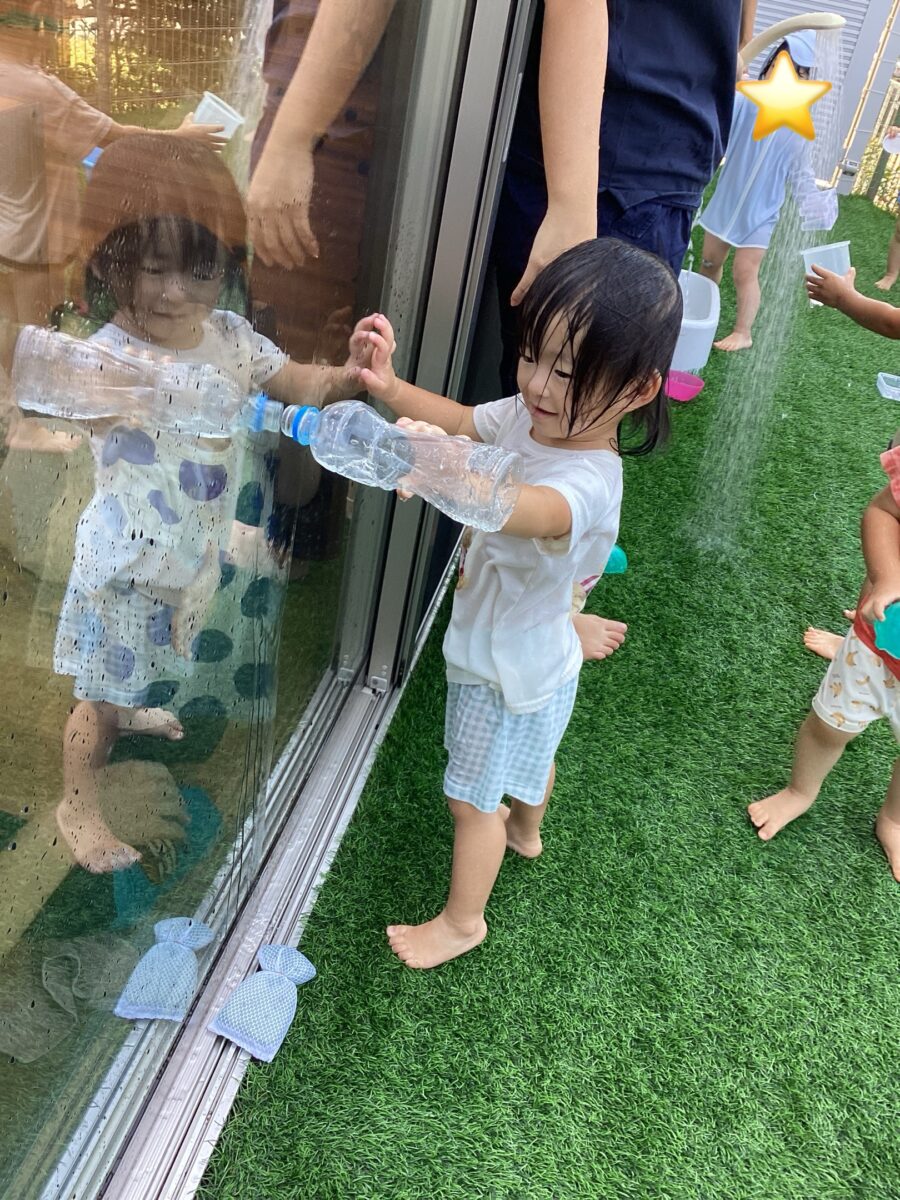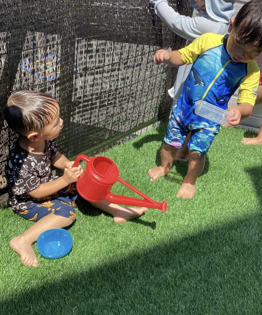 今日はテラスで水遊びをしました!