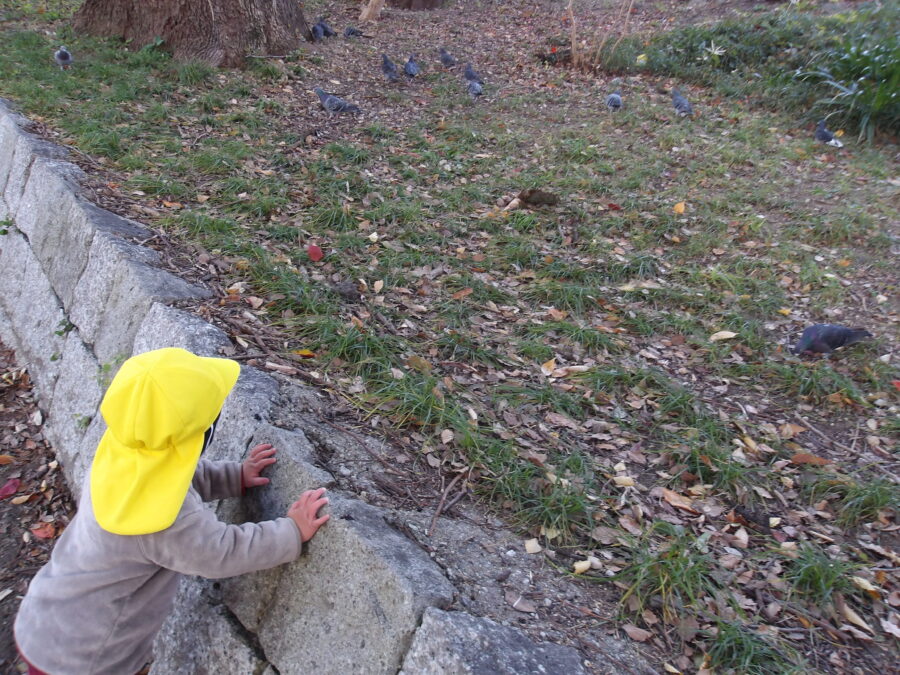 落ち葉がたくさんあって踏みしめたり、葉っぱを拾っていましたよ。