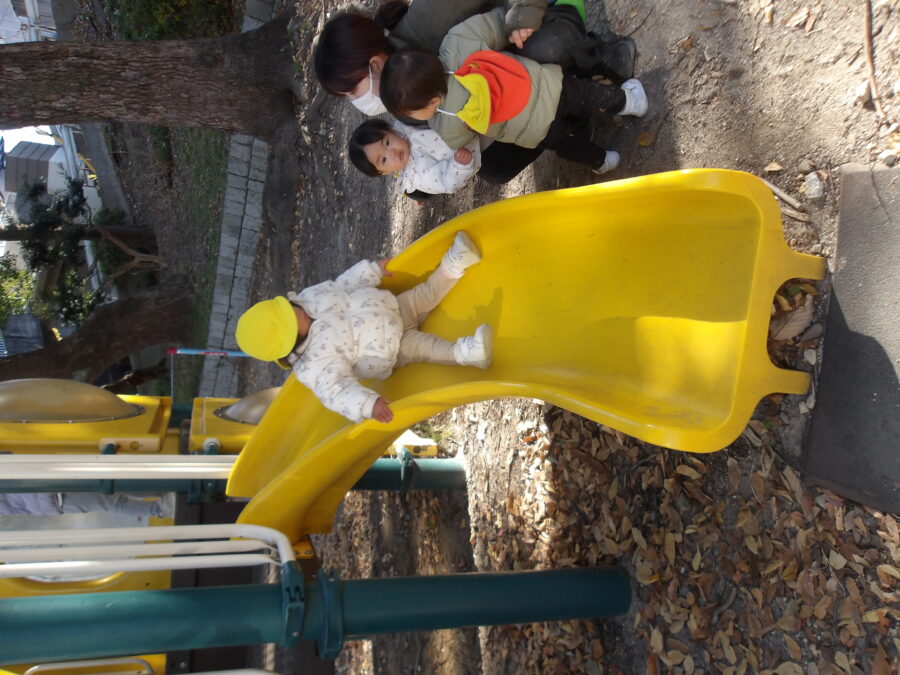 小さな滑り台を自分で一生懸命階段を登ってシューと降りていました!!