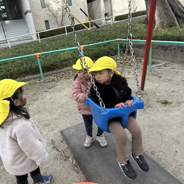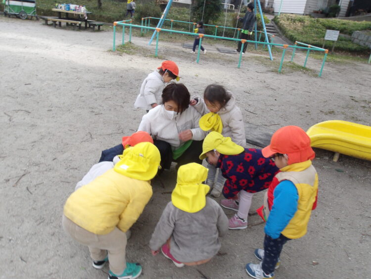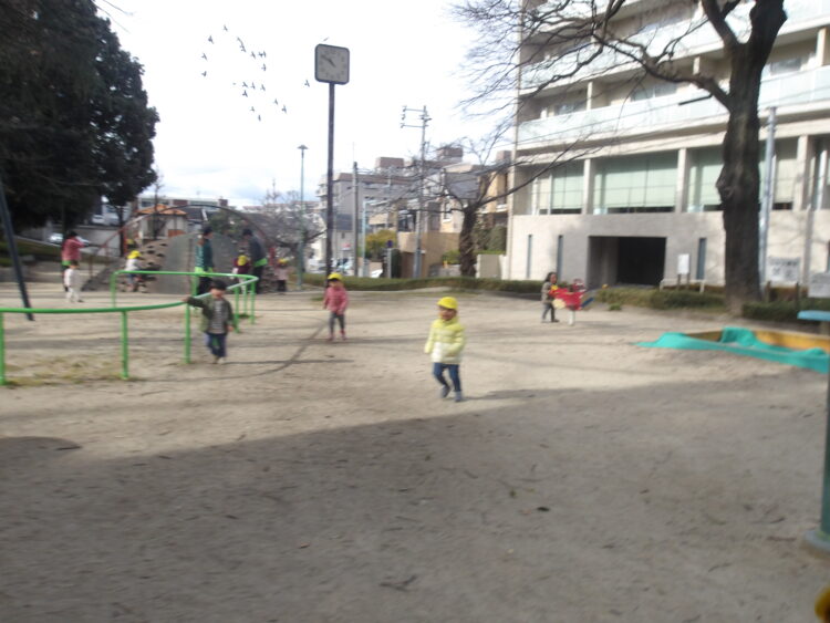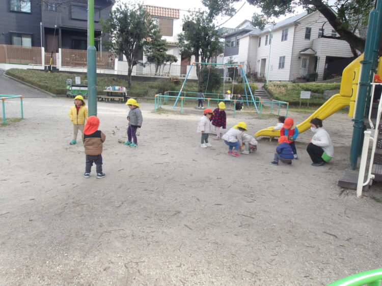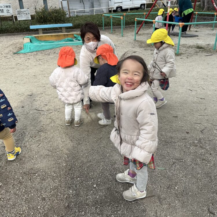 西山公園に行きました🛝 今日は西山公園に行きました。丸型ブランコや滑り台は大人気! 地面にお絵描きも始まりました! 先生がおばけを描いてくれたよ👻 寒かったのでかけっこもしましたよ元気いっぱい遊べました😄 カテゴリ: 覚王山(0〜1歳), 覚王山(2~3歳) タグ: