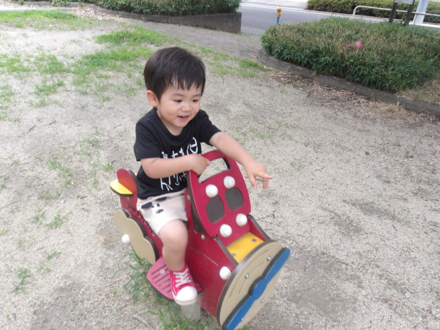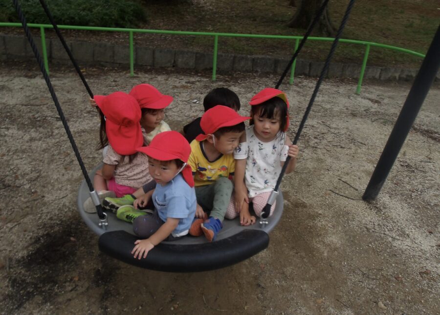 UFO型ブランコで、ゆ〜らゆ〜ら