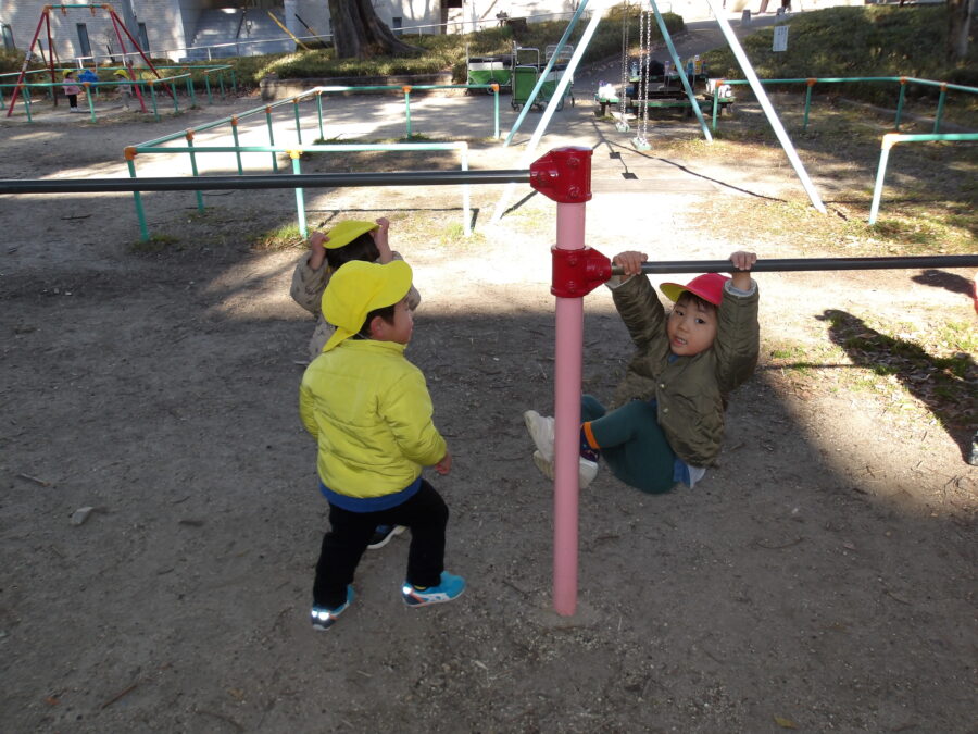 好きな遊具のところに行き遊んでいました