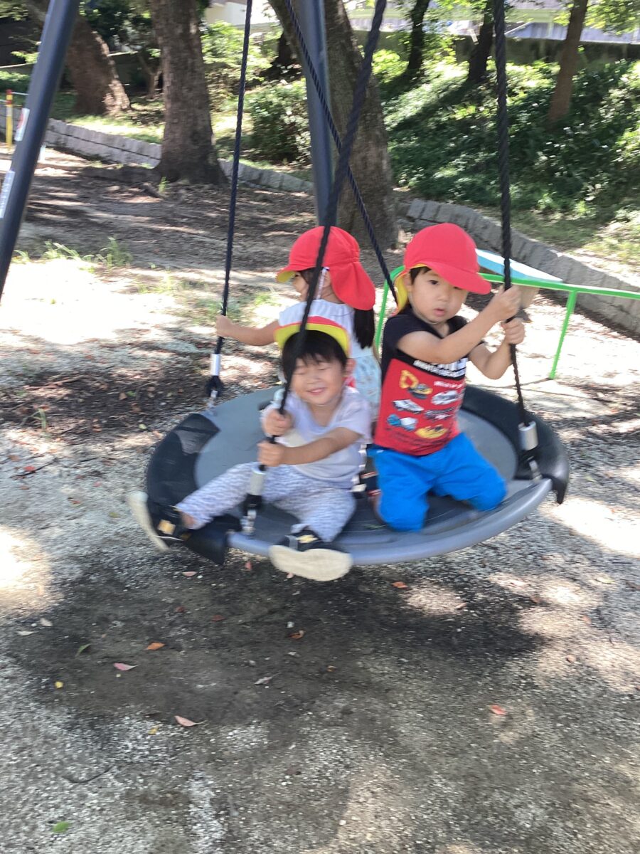 今日はお天気が良かったので、うさぎぐみさんとあひるぐみさん、ひよこぐみさんの3クラスで西山公園へ行きました!