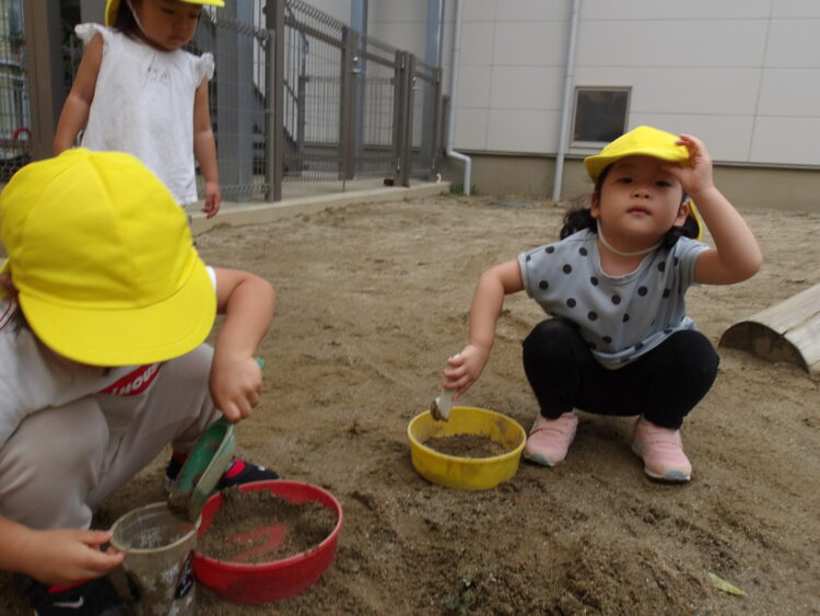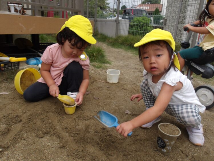 お友達と砂遊びをしたり、三輪車でサイクリングをする姿が見られました😊