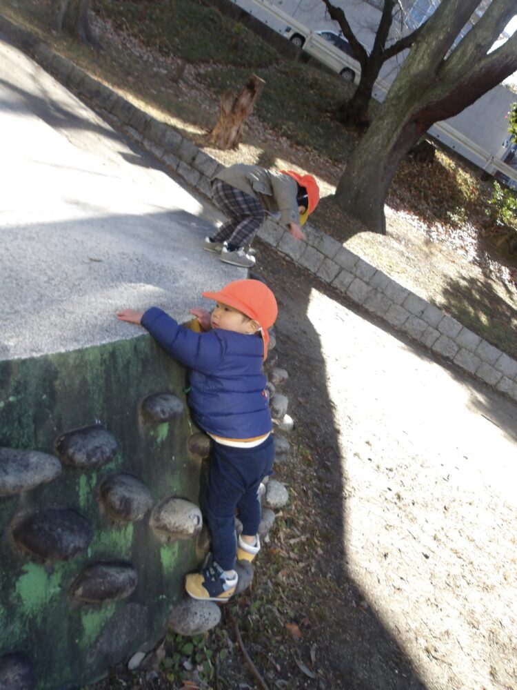 今日は、向かい風が強い日でしたが、皆子どもたち同士や先生と手を繋いで西山公園まで頑張って行きましたよ![]()