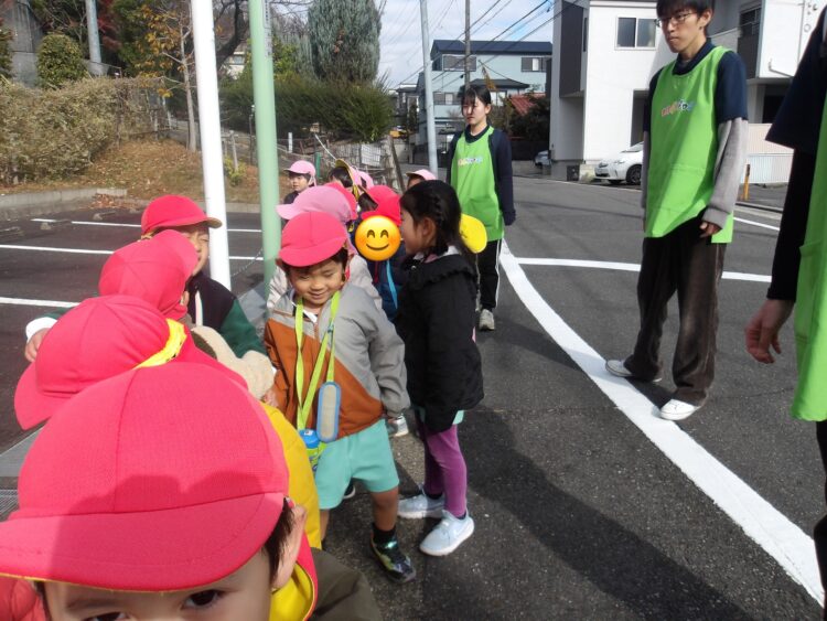 みんなで逃げる時のお約束を確認して、その後は実際に引き渡しの際の避難場所「愛知学院大学」までみんなで歩いて行きました!