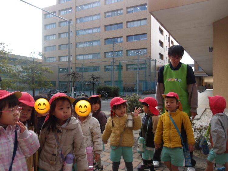 無事、大学に到着すると大きな建物にみんなびっくり!