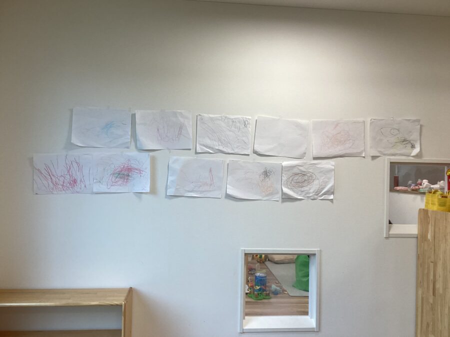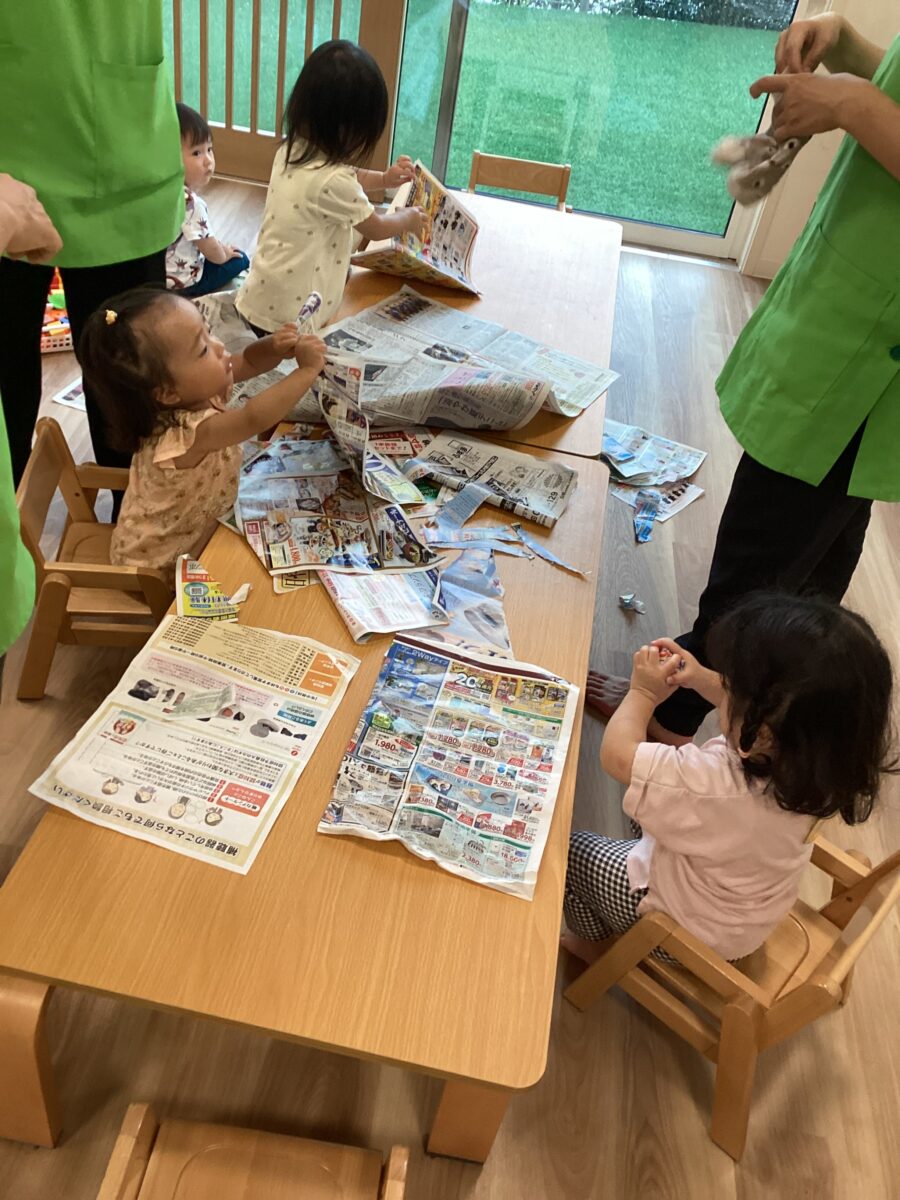 あひるぐみさんはお絵描きや新聞紙ビリビリをして遊びました。