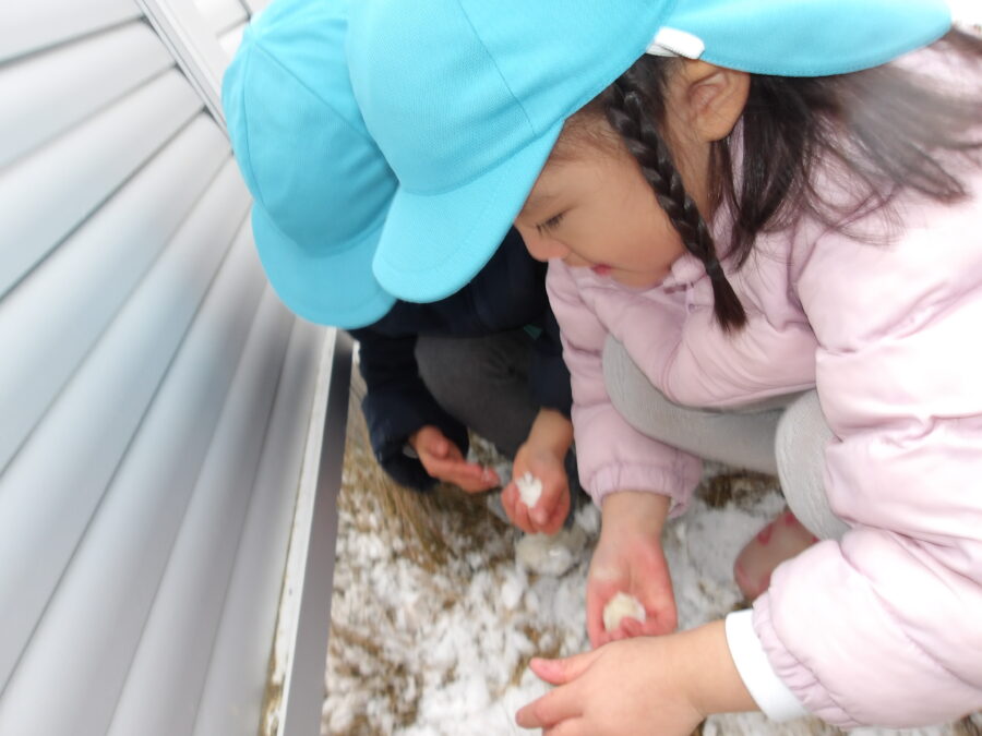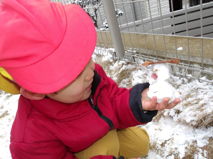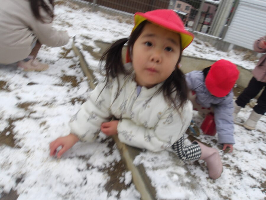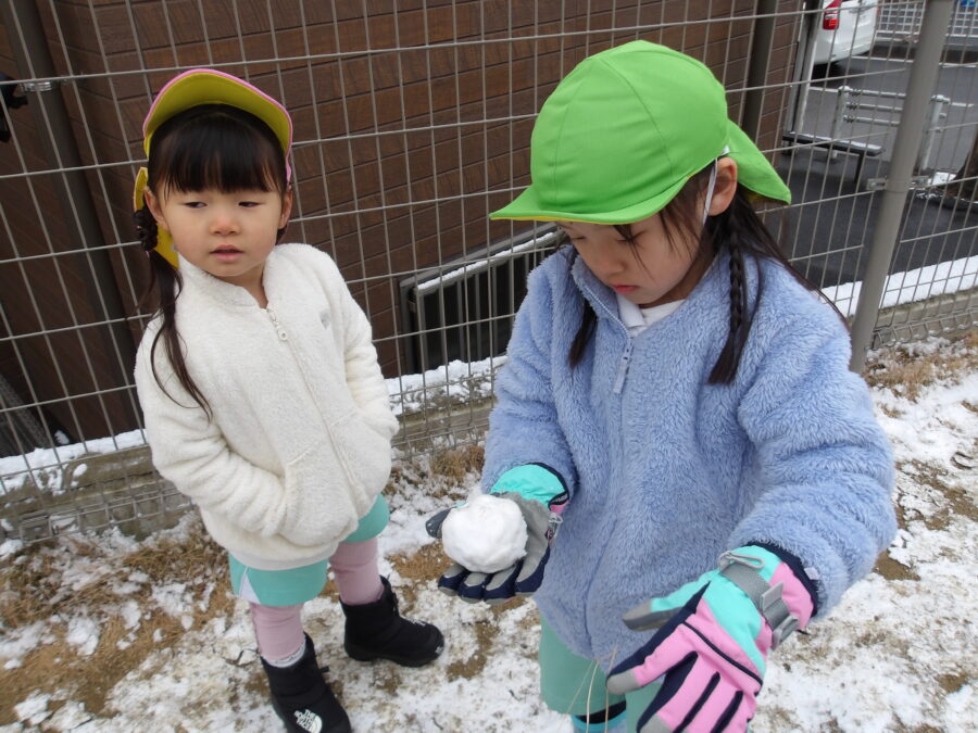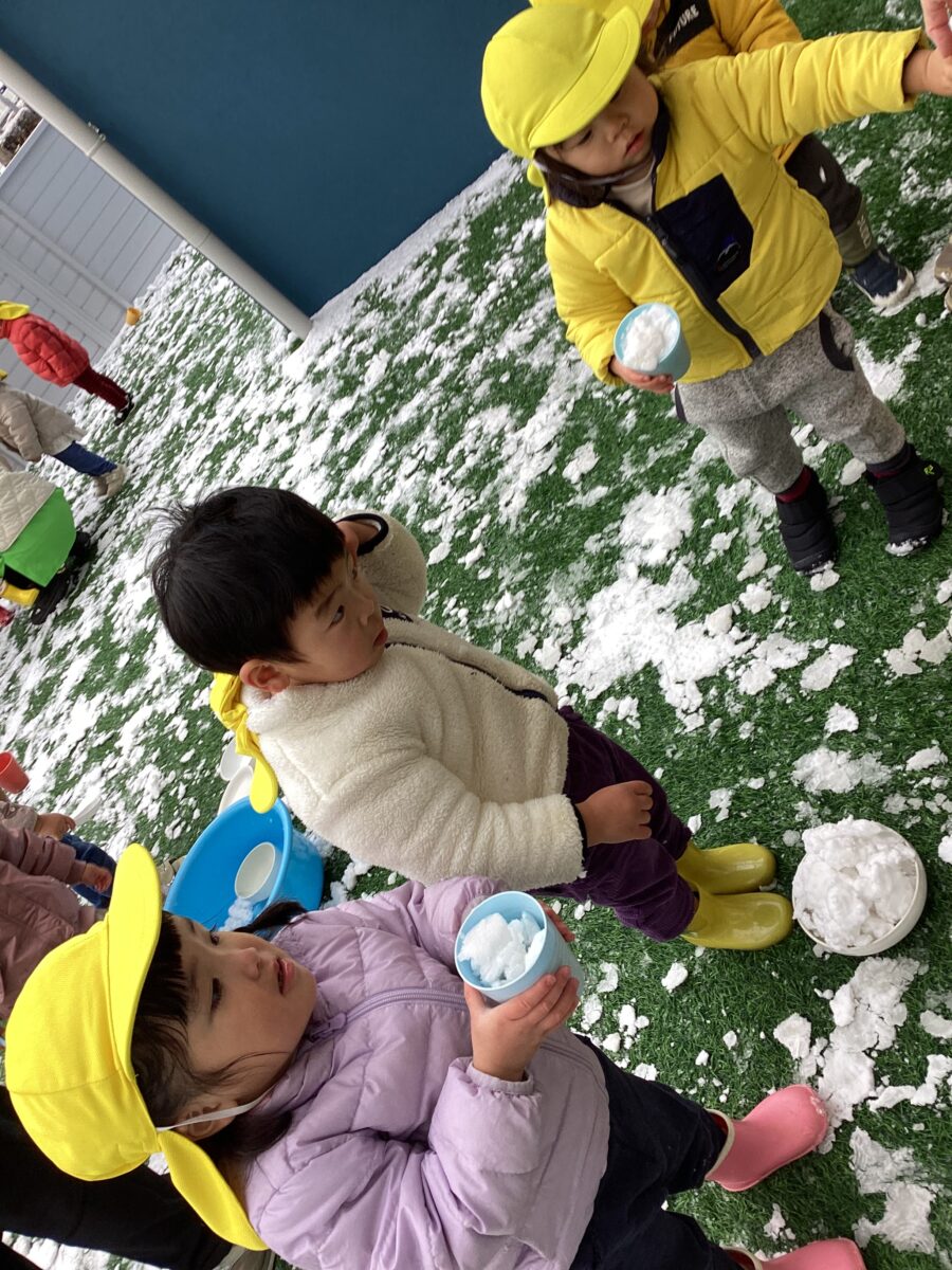 カップに雪を入れて「どうぞ」とくれたり、雪合戦を楽しんだりと遊んでいました![]()