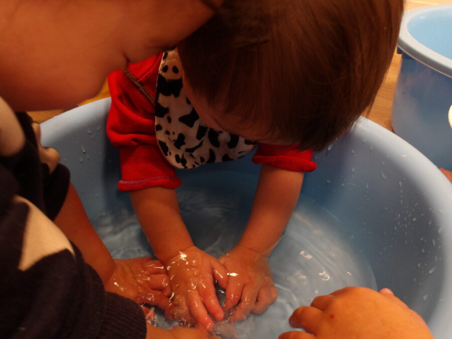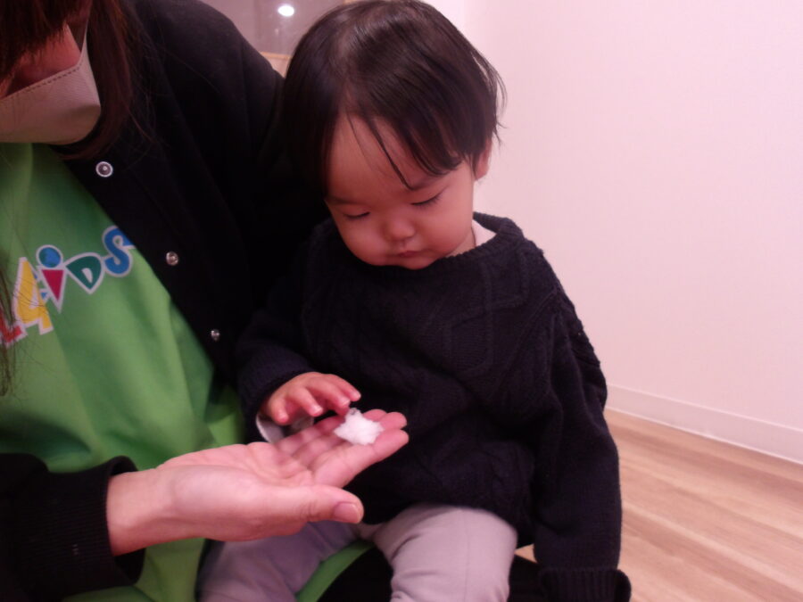 ひよこぐみ🐤は、タライに雪を入れて、お部屋で触って遊びました