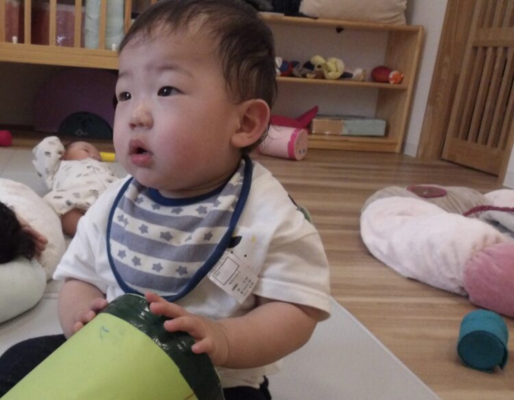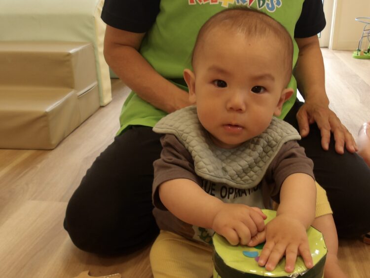 「おおきなたいこ」をうたうとニコニコしてたたいていました![]()