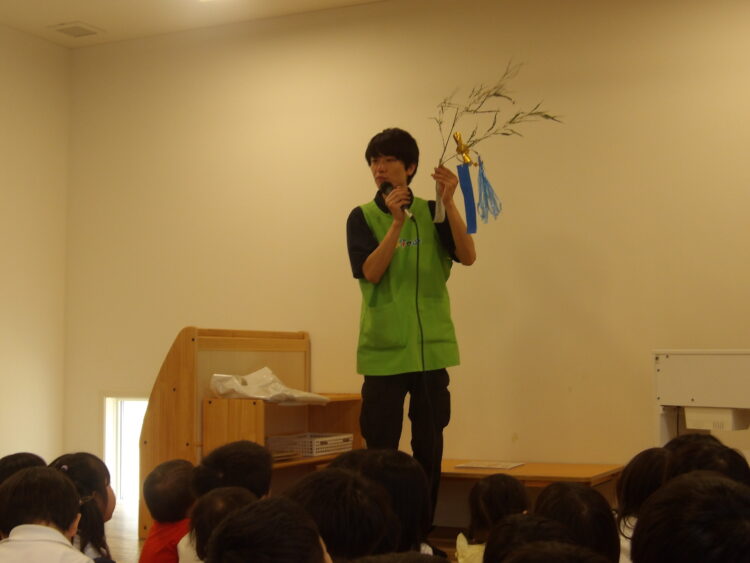 みんなで作った短冊と飾りをつけた笹を持って帰ります!