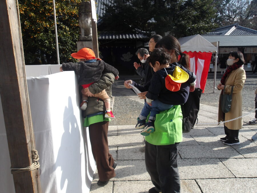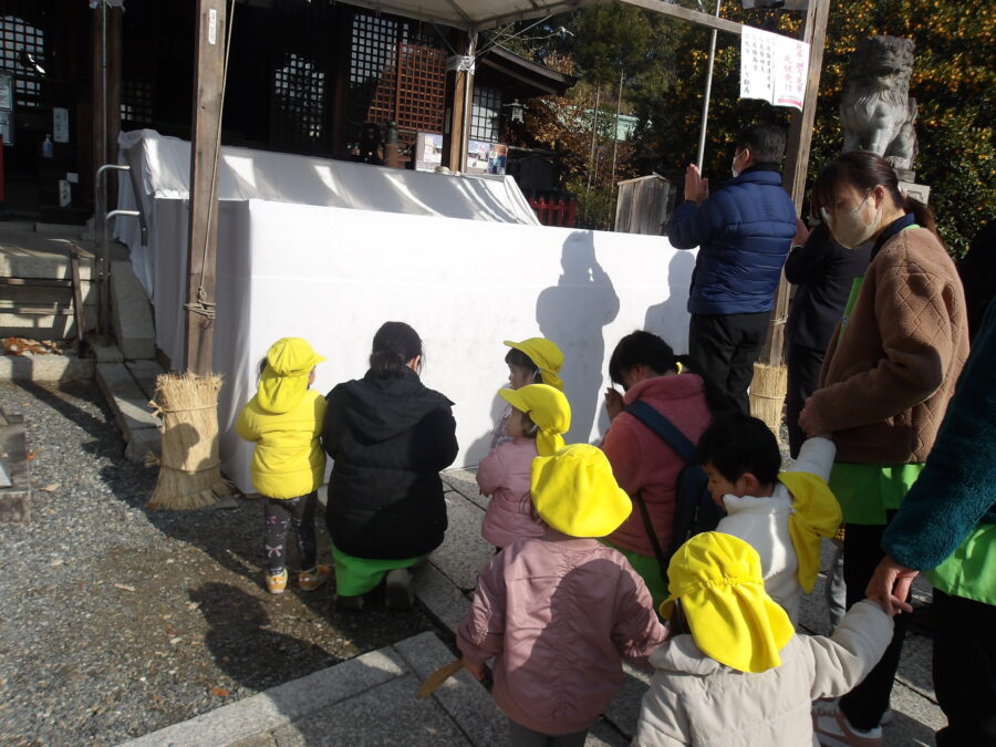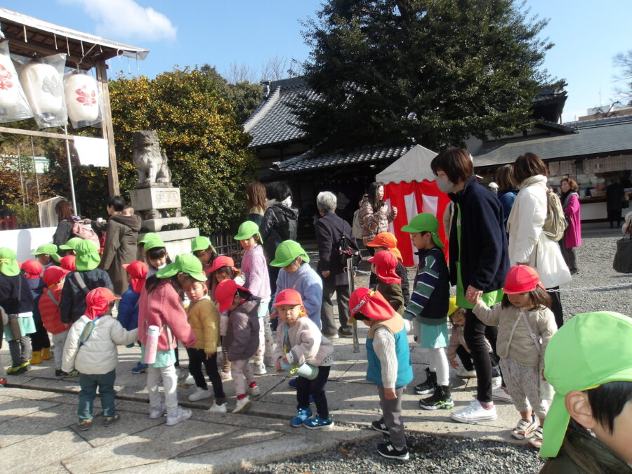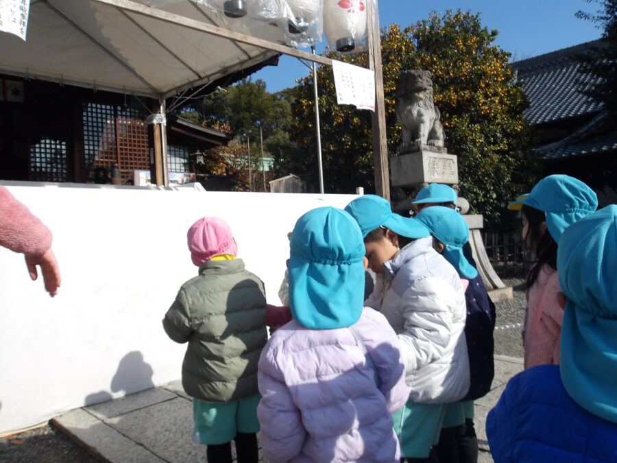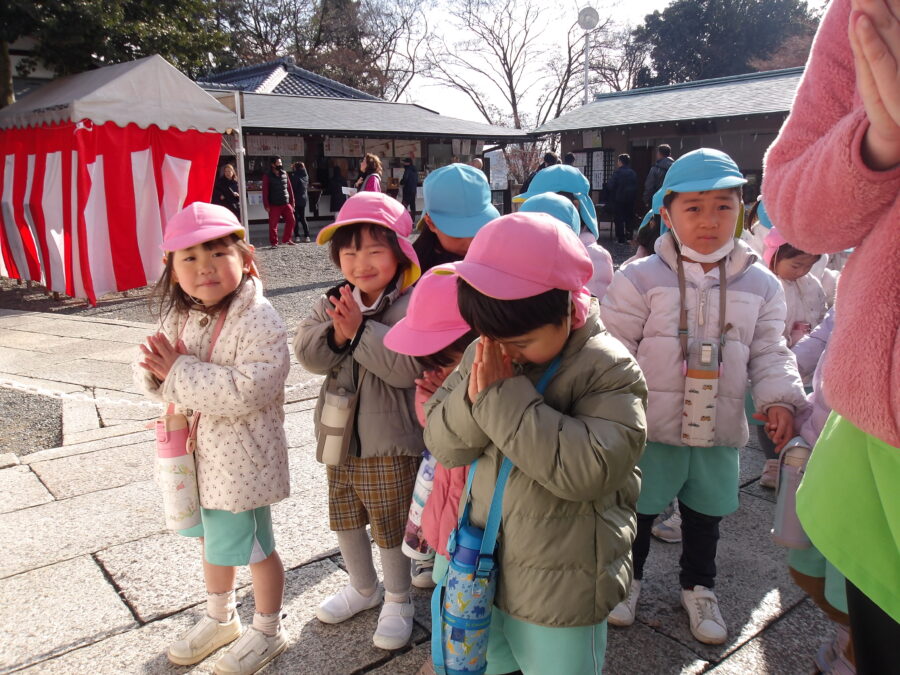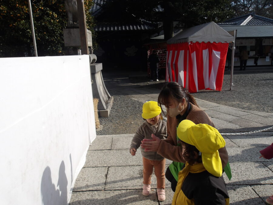 列に並ぶ時も、先頭に来てお参りする時も少し緊張している様子でしたが、先生と一緒にどうやってお参りするかを確認しながら上手に手を合わせていました![]()