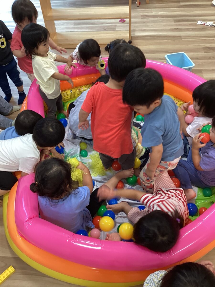 大きなプールが出て来て「きゃー!」と大喜び、さらにボールが出てきて大はしゃぎの子どもたちでした。