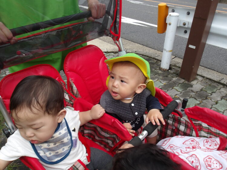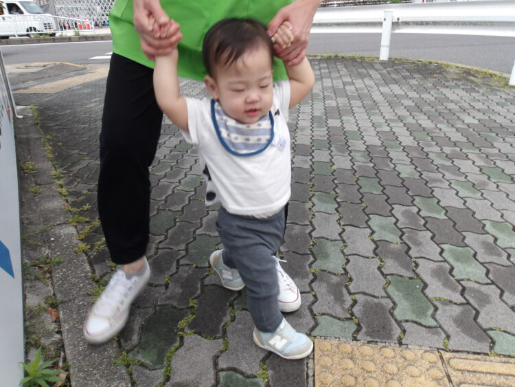 歩くことに興味を持ち、歩いていました草花を見たり触ったりとしていました