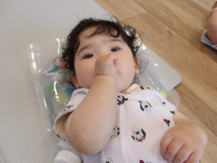 たくさん寝て、ミルクも飲み保育士の方を見ていました![]()