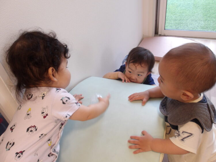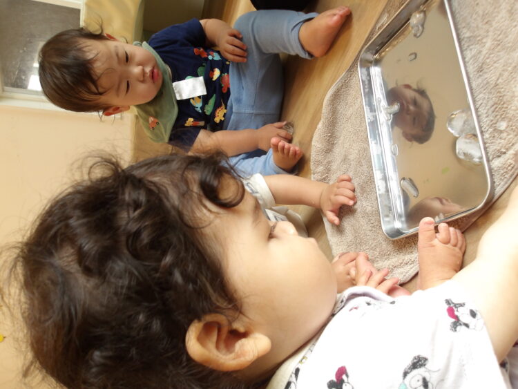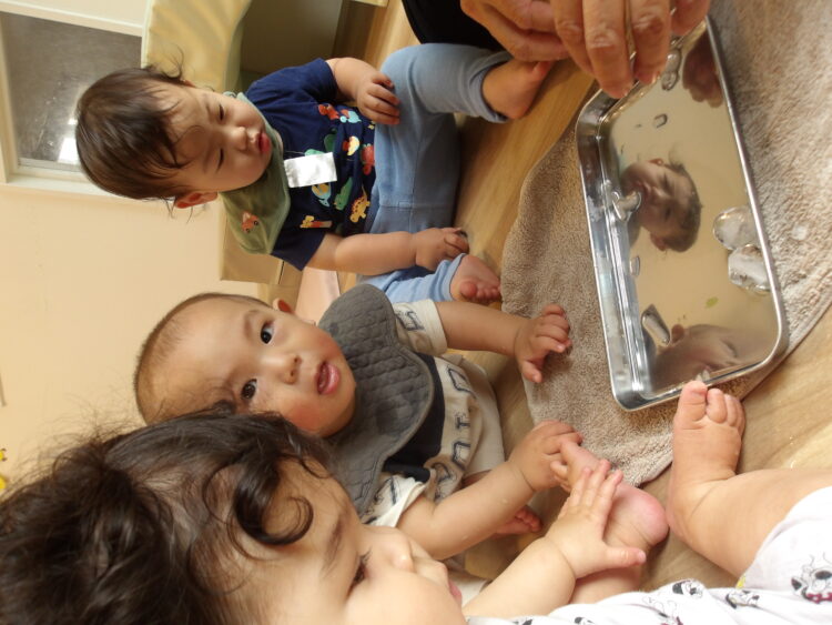 ジーと見たり口に持っていこうとしていました![]()