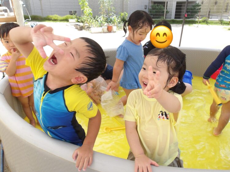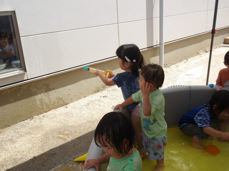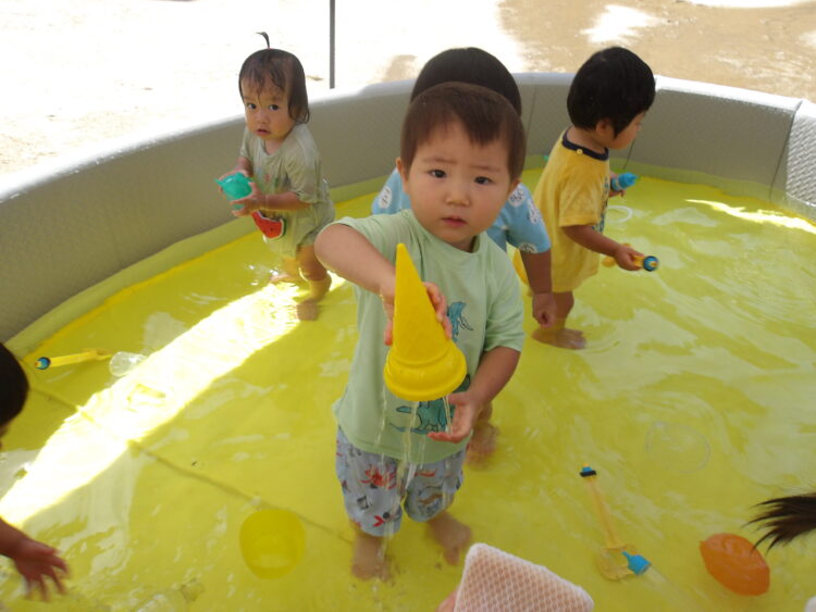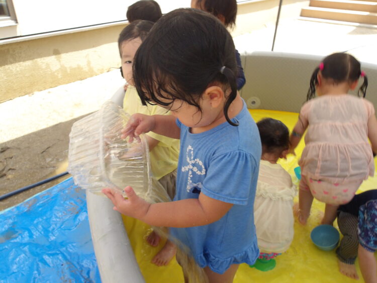 保育士からのシャワー🚿お水を手で受け取っている様子も…!🤲🏻🤲🏻