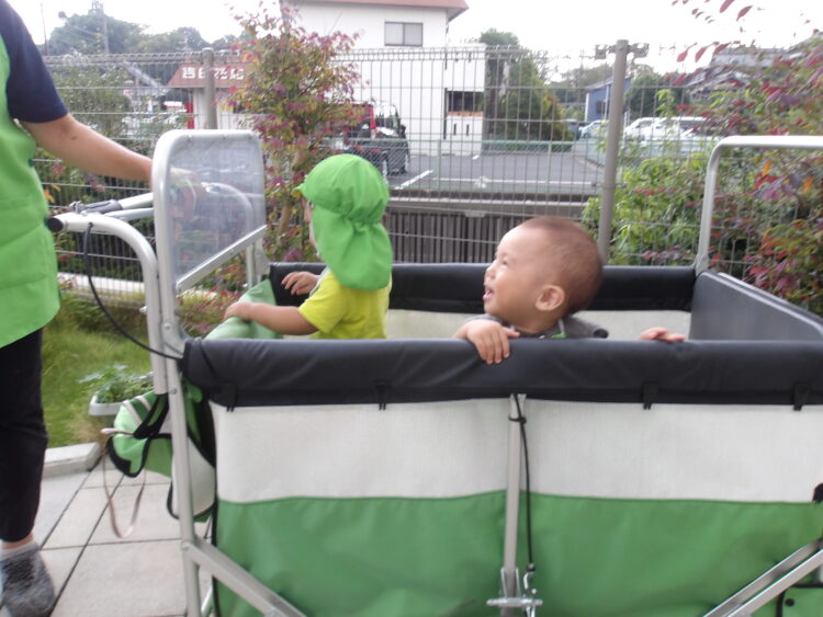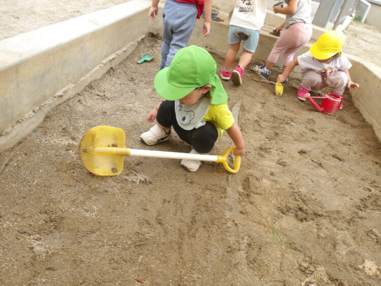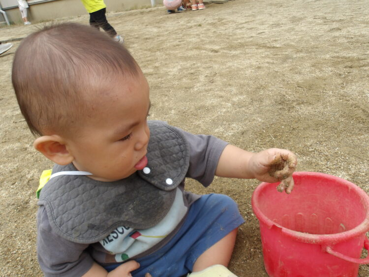 園庭では、砂場で遊んだり、バケツの中に砂を入れていました![]()