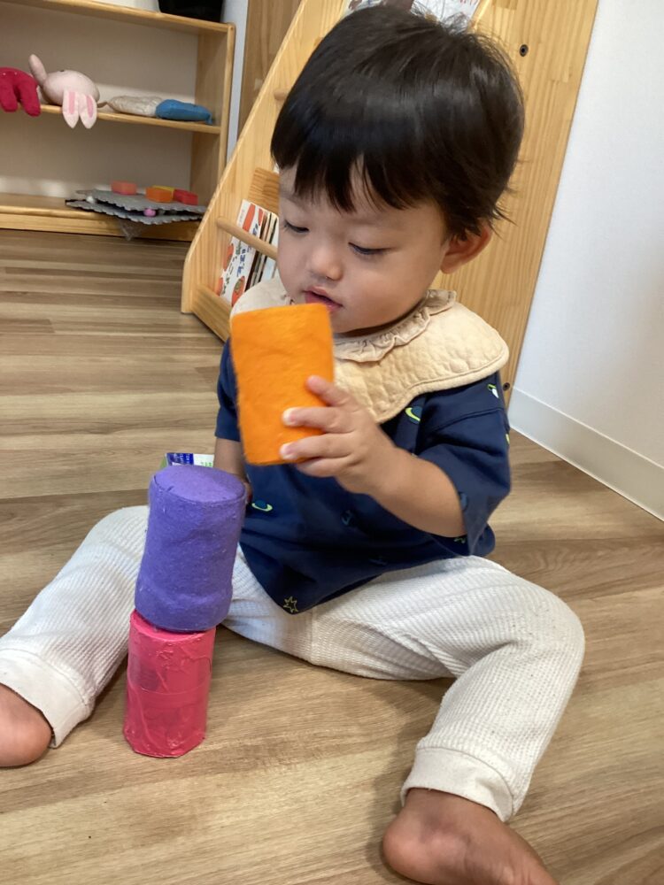保育士と一緒に重ねて自分で挑戦![]()