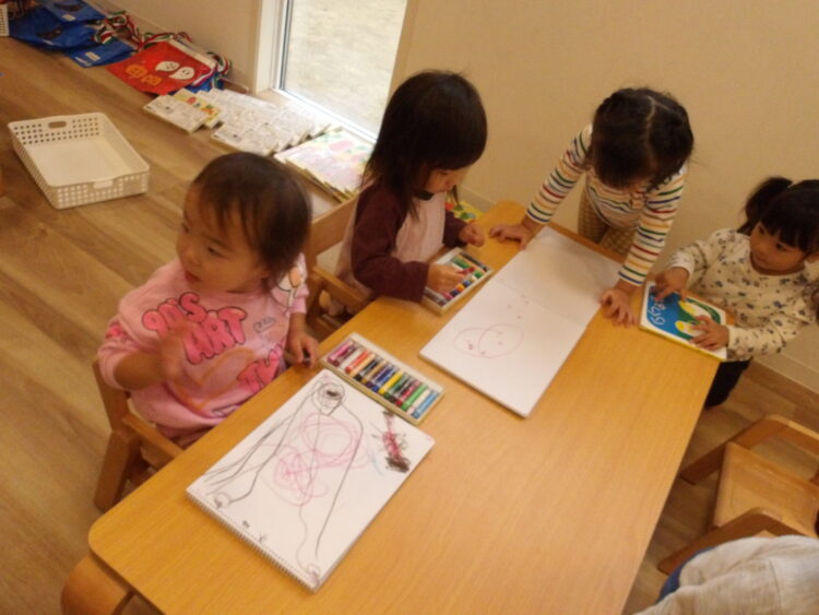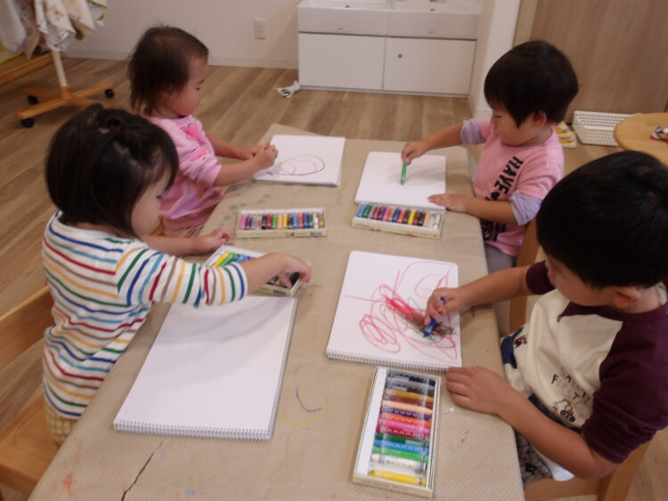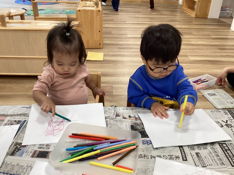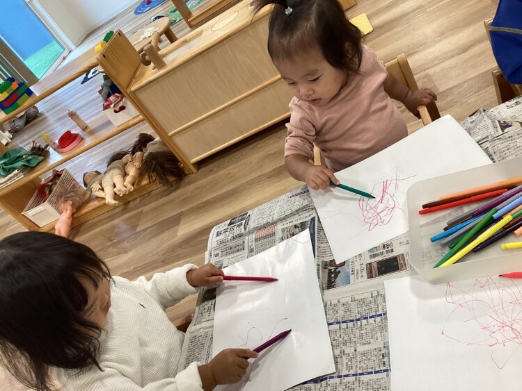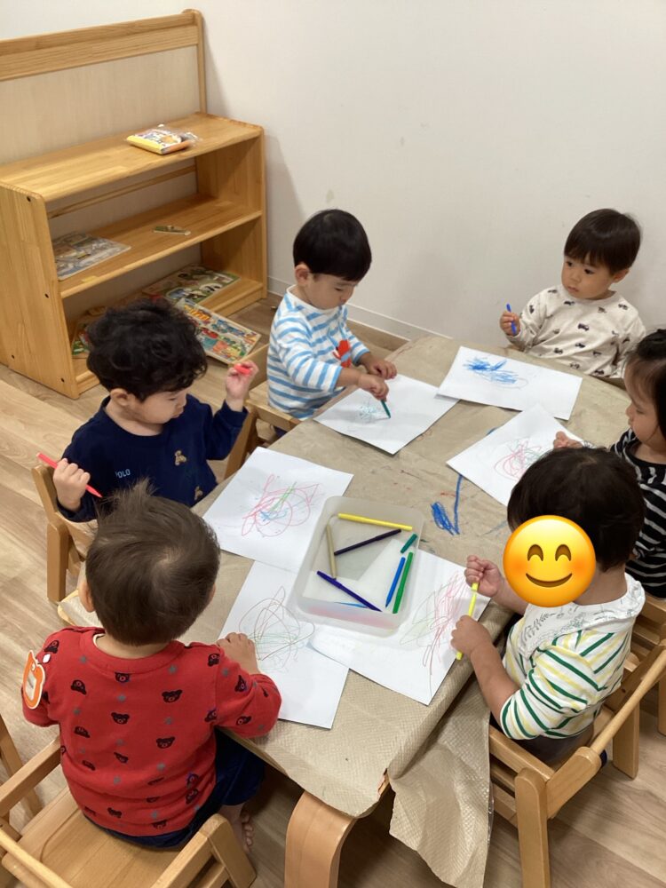 今日は雨模様☔お部屋で過ごしました。あひる組はサインペンでお絵描きをしました。好きな色を選んで描いていますよ🖍️✏️🖍️