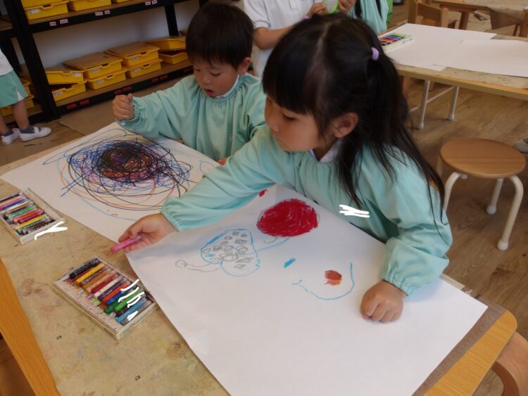 室内ではクレヨンで絵を描いたり、粘土をしたりしながら