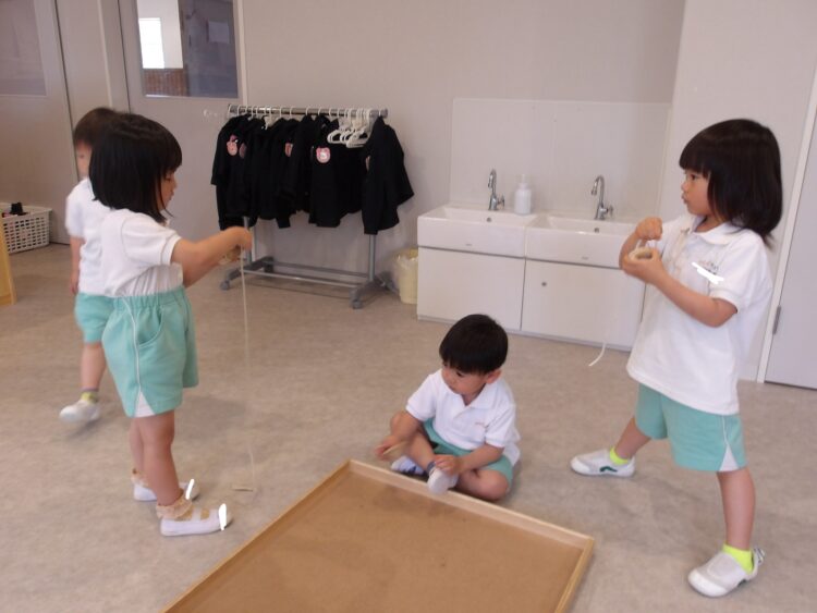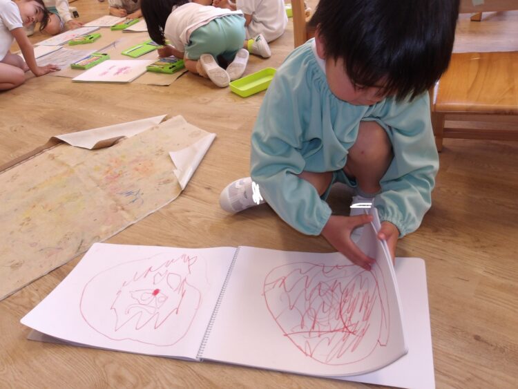 お友だちと出来上がりを見せ合いっこをして楽しむ姿がありましたよ![]()