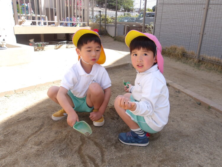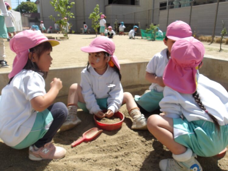 園庭ではお砂場でお話ししながら作り物をしたり、追いかけっこをしたりして楽しんでいましたよ![]()