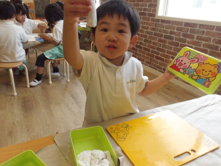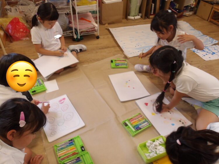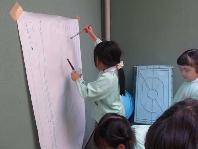 たいよう組さんは、オーストラリアzoomの後にテラスで垂らし絵で雨を表現しました☔️