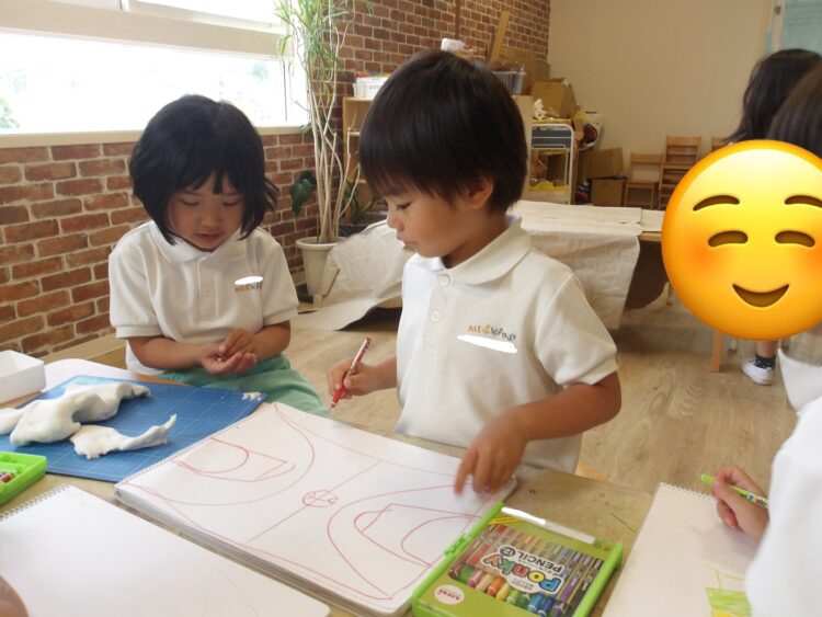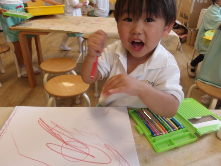 ネイチャーのお部屋では粘土をこねていろんな形にして楽しんだり、カラフルな色を使って自由画帳にお絵描きしたりして楽しみました!