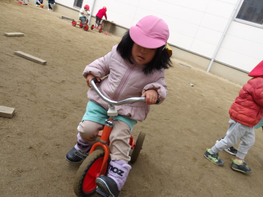 お外では、みんなで鬼ごっこをして遊んだり大好きな三輪車や玩具を使って