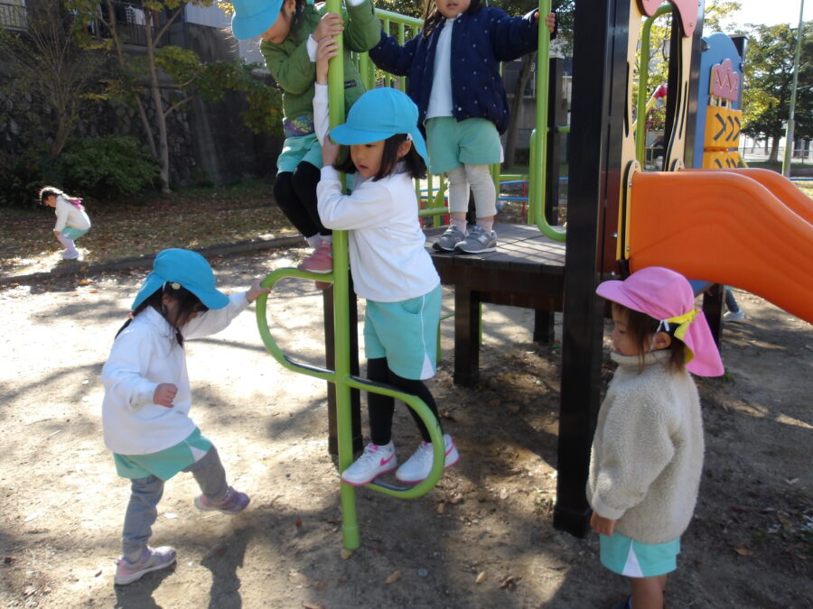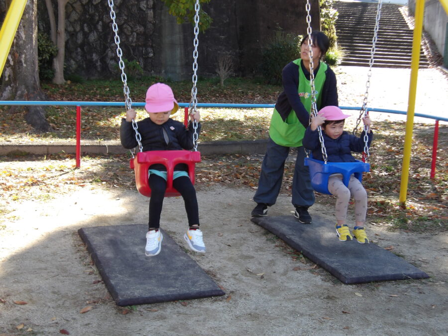 鬼ごっこをしたり、遊具で遊んだり、ごっこ遊びして遊んでいました 先生がブランコを押して、高い場所までこげていました🥰 遊具の上でひなたぼっこをする姿もありました😊 次はいつ公園に行くのかな🥰