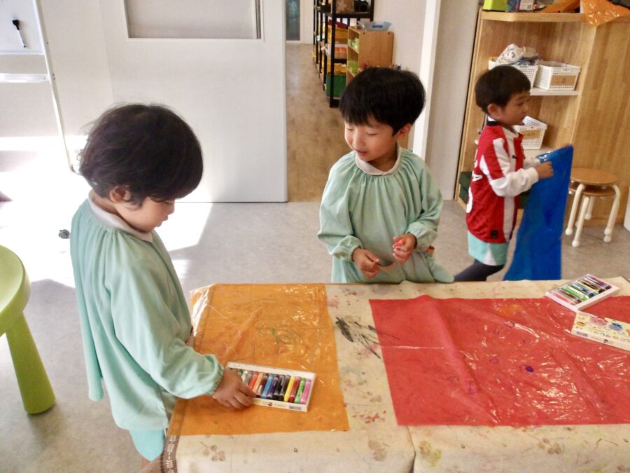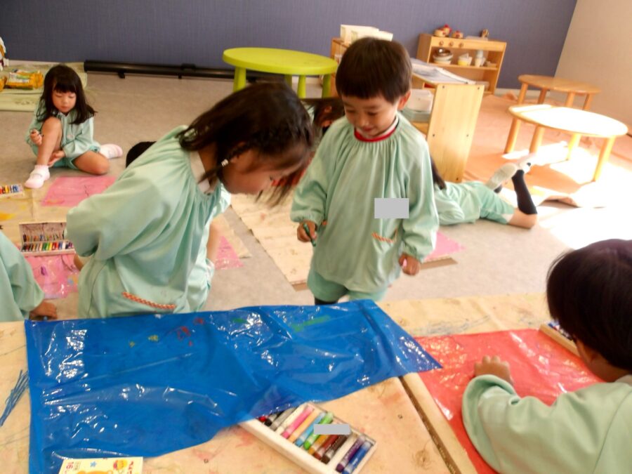 お友だちの描く絵を気にしたり、自分が描いた絵の紹介をしていました![]()