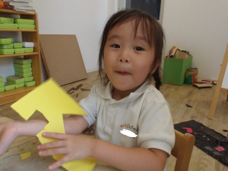 はさみをうまく使いながら、自分の好きな形に画用紙を切ることができました!