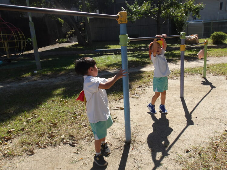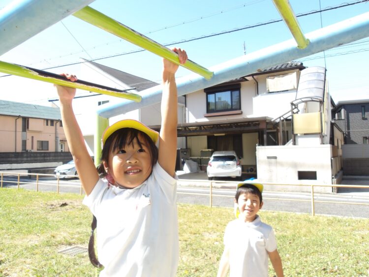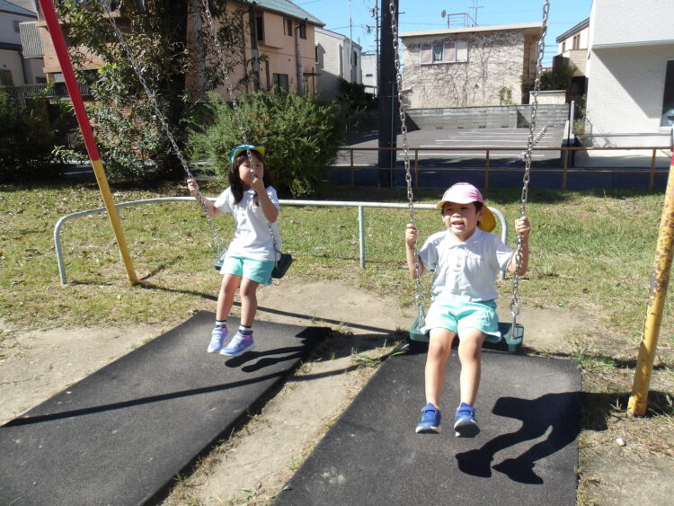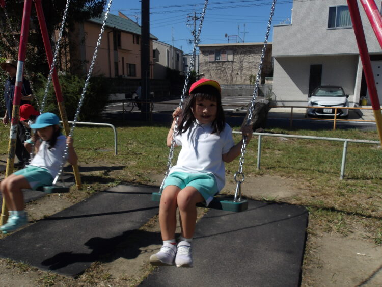 公園では、ブランコや滑り台、鉄棒などさまざまな遊具で遊んだり、お友だちと鬼ごっこをしてたくさん走ったり、全力で楽しむことができました![]()