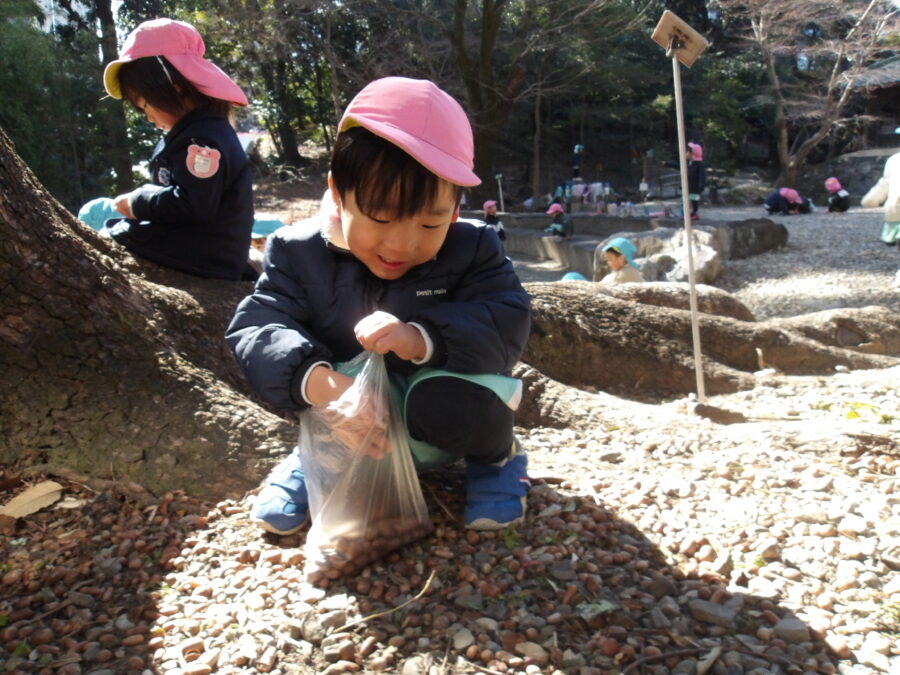 どんぐりや葉っぱを袋に入れて持ち帰っていました🥰