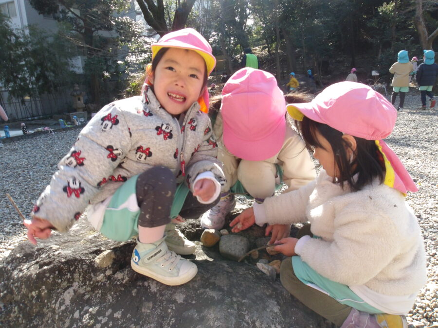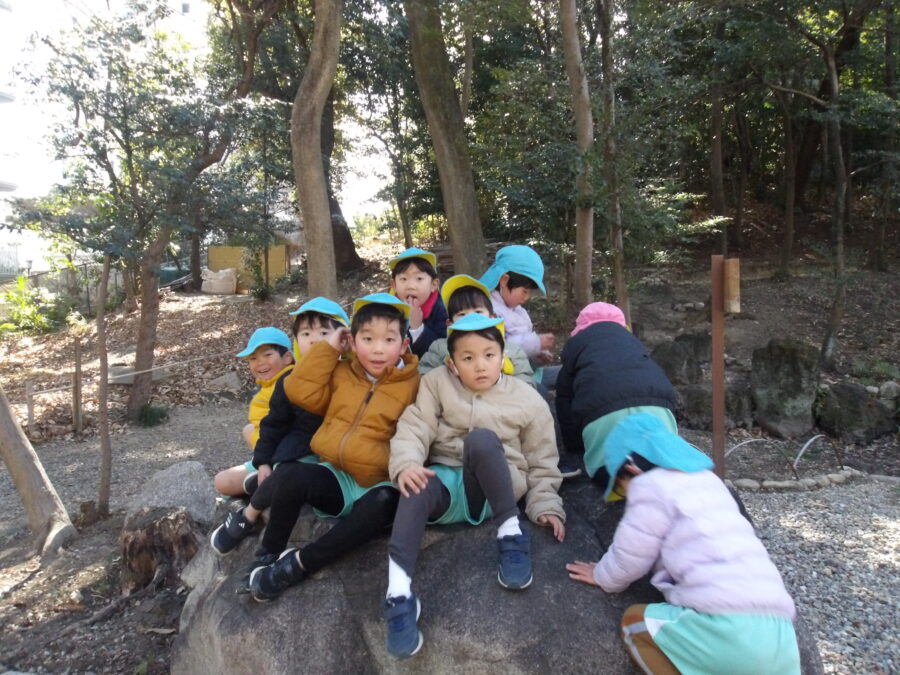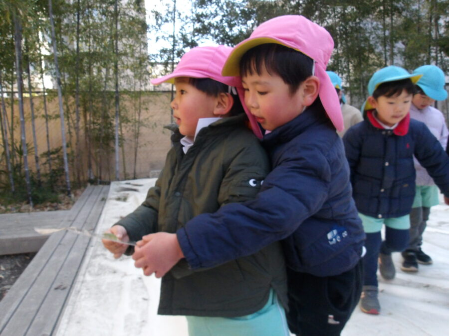 そら組さんはにじ組さんと手を繋いで歩いていました![]()