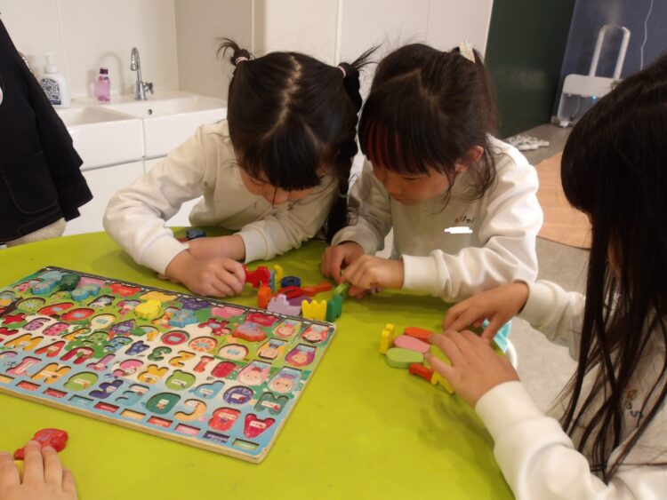 見本を見たり、お友だちと教え合いをしながら豆箱を作りました![]()