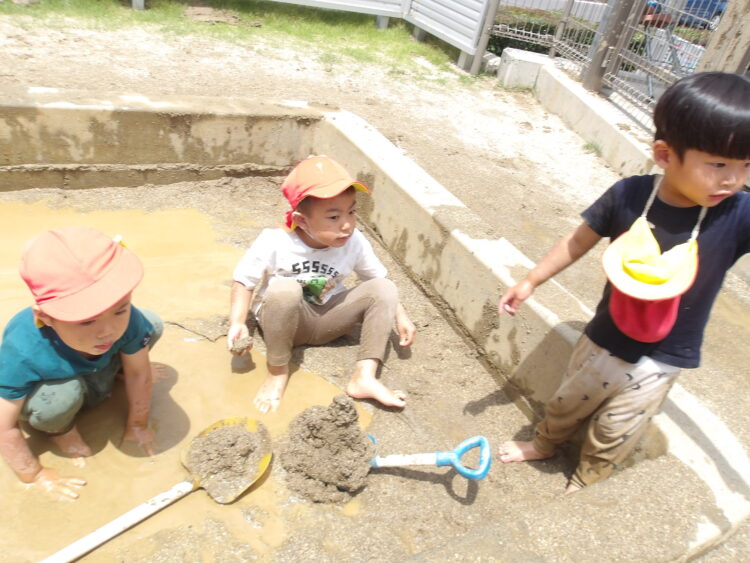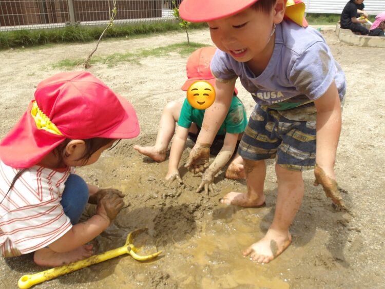 雨が続いていましたが、今日は天気がよかったのでどろんこ遊びができました☀️