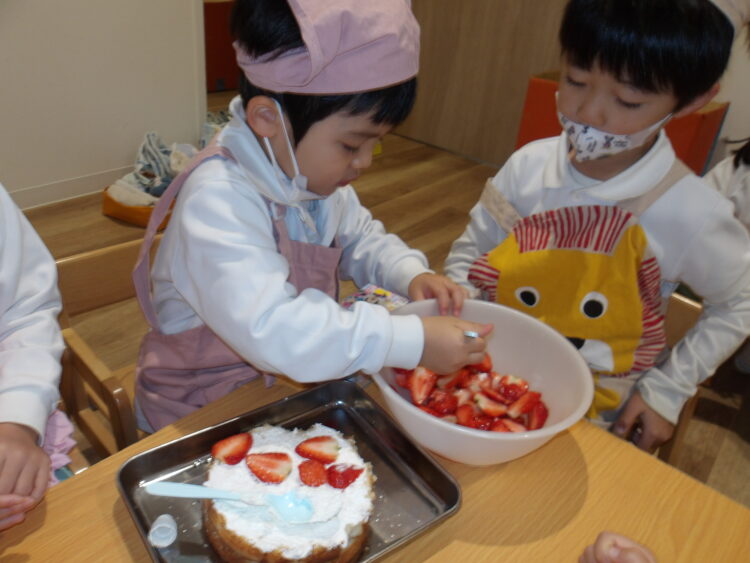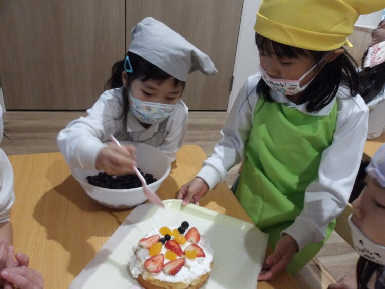 クリスマスケーキを作ったよ! 今日はクリスマスクッキング🎄をしました! バディで力を合わせて、スポンジに生クリームやフルーツをのせ、 テーブルごとに可愛くフルーツで盛り付けされた素敵なクリスマスケーキが出来上がりました 美味しかったね カテゴリ: 覚王山(2~3歳), 覚王山(4~5歳) タグ: