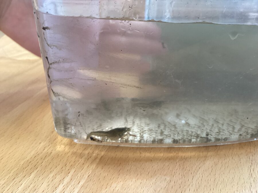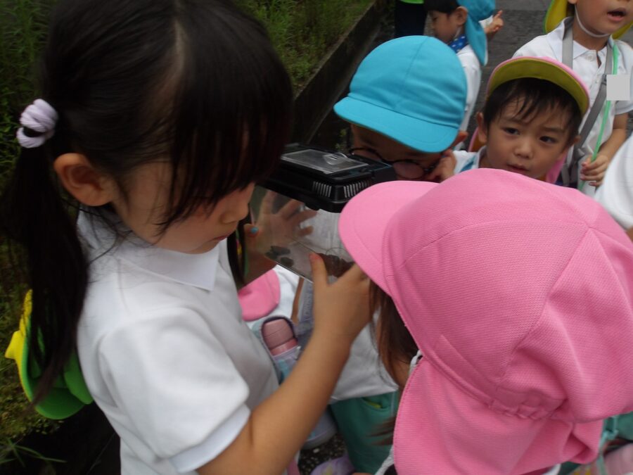 はじめは、ザリガニが上手に隠れていて「いないね〜」と言っていた